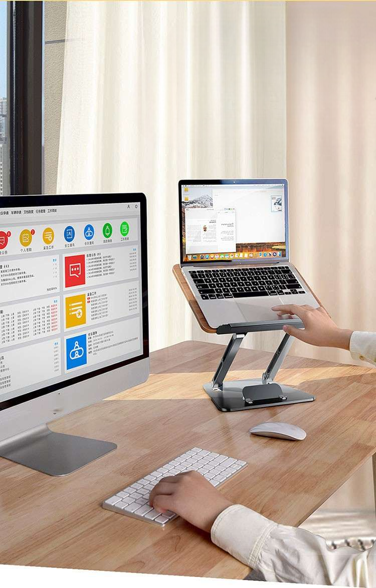 天然木を使用したおしゃれなpcスタンドで、デスク上の整理整頓を実現します。