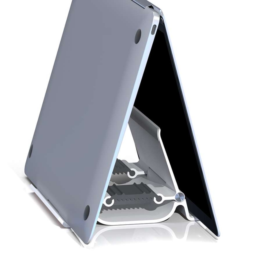 携帯性を重視しながらパソコンを立てることができる、折りたたみ式のアルミ製スタンドです。