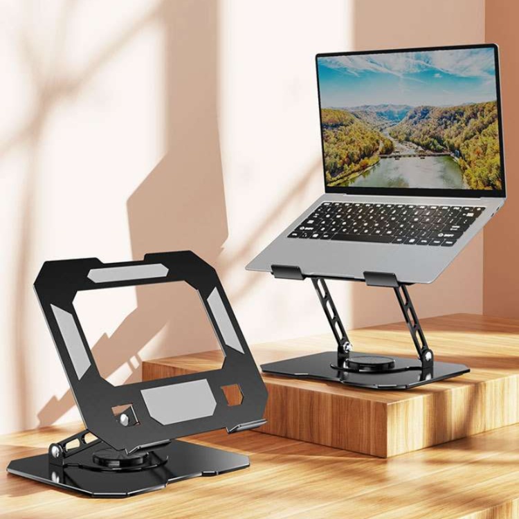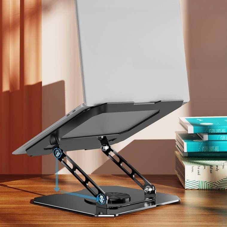 ノートパソコン用パソコンスタンドで360度回転機能搭載。 ワンタッチで自由な角度調整が可能な多機能設計。 軽量で持ち運びしやすく、高さ調整により首や肩への負担を軽減。 安定感のある台座で様々な作業環境に適応し、快適な作業姿勢をサポート。