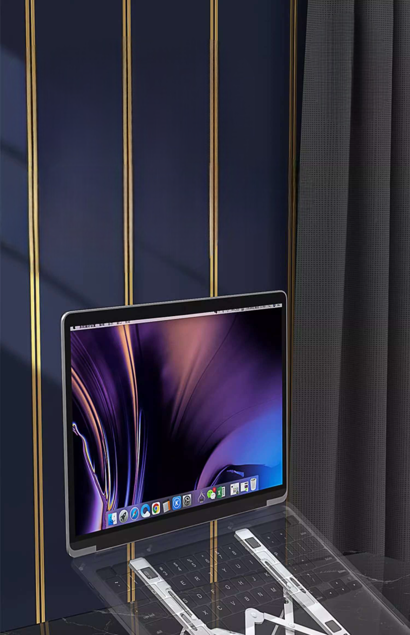 三角形構造で安定感抜群のパソコンスタンド。ノートパソコン用として最大185mmまで高さ調節可能。