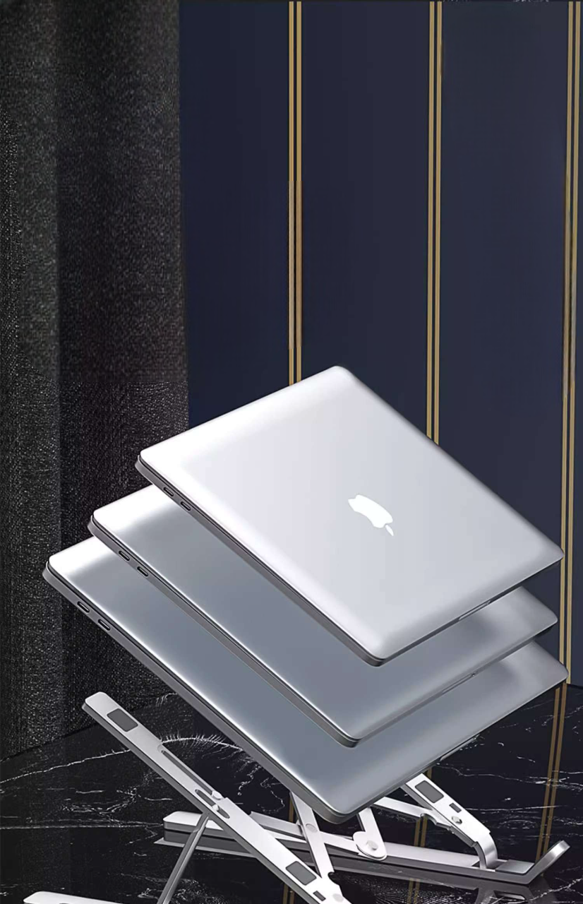 折りたたみ式で持ち運びにも便利な多機能スタンド。タブレットにも対応した実用的な設計です。