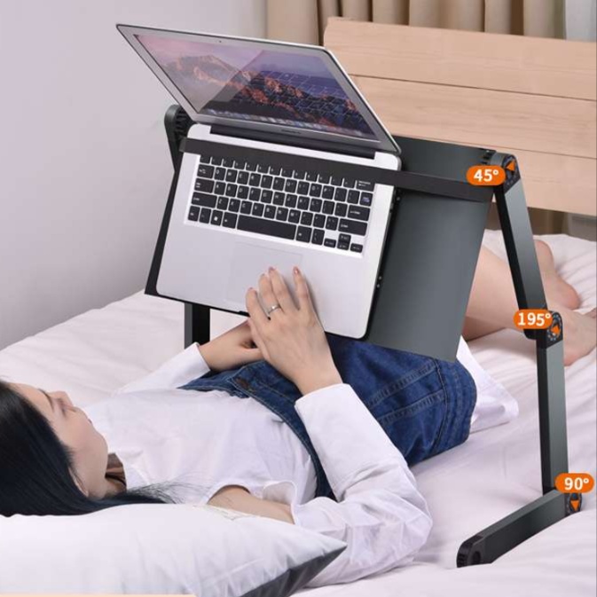 寝ながらでも使える便利な角度調節機能付きで、ベッドやソファでの作業が快適に。