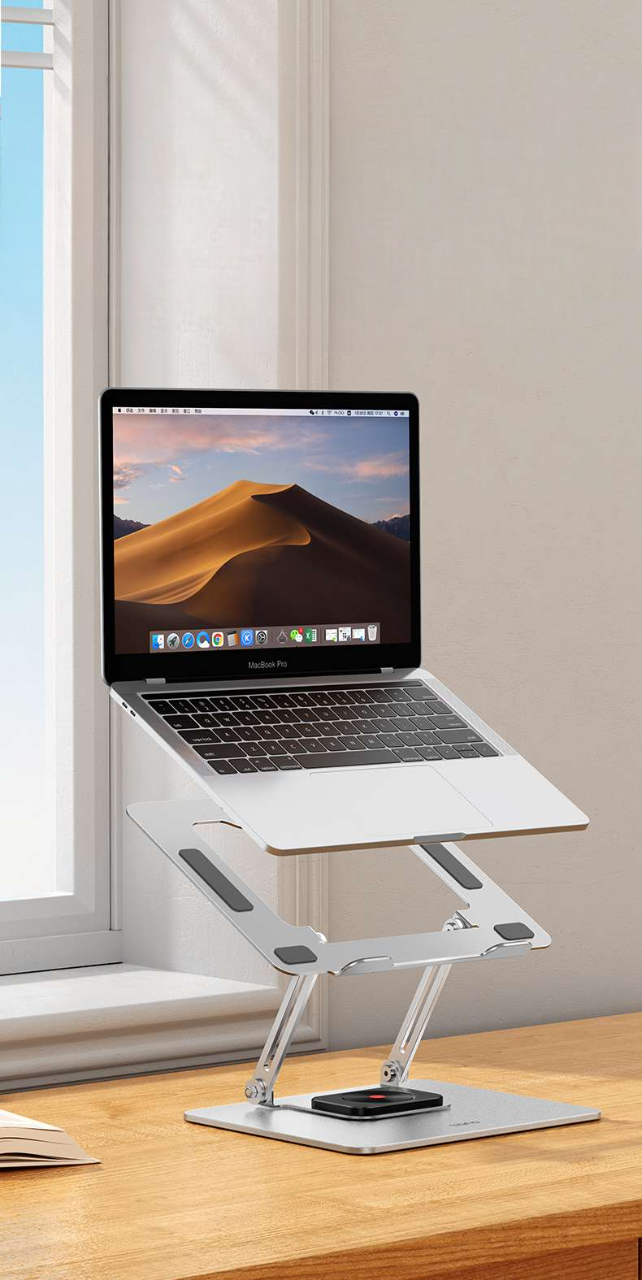 高耐久のパソコンスタンド。ノートパソコン用として平板機器にも対応。 最大40kgまで支える金属一体成型で頑丈かつ軽量設計。 大型底盤による優れた安定性と放熱構造を備え、快適な作業姿勢を実現する高さ調節機能付き。
