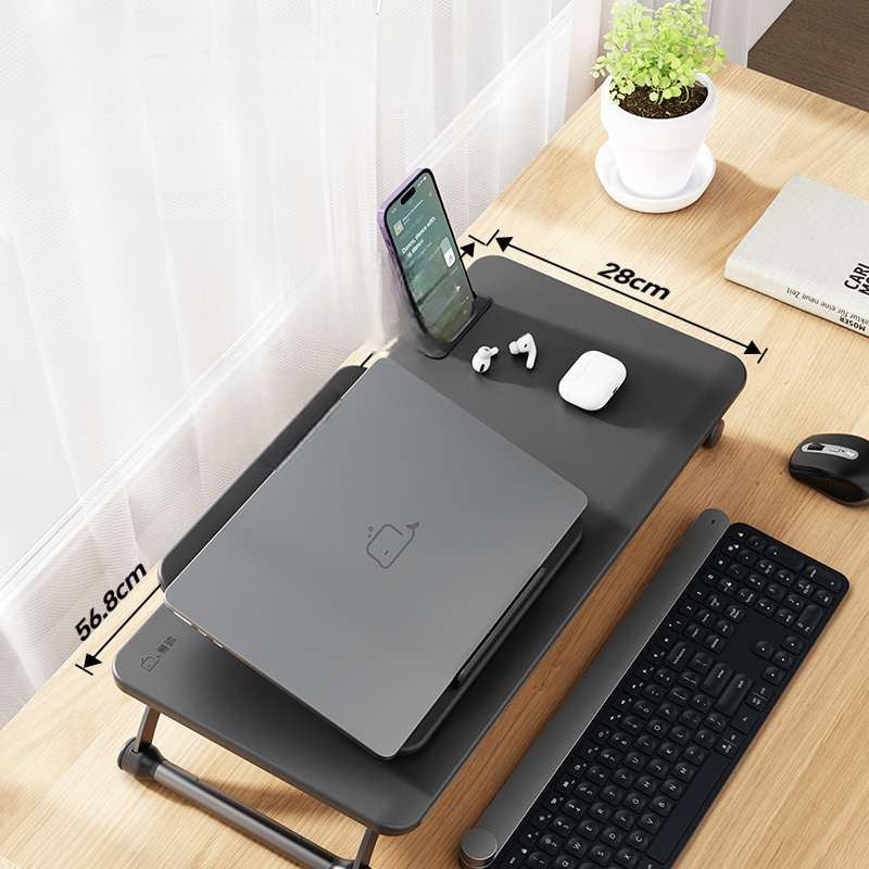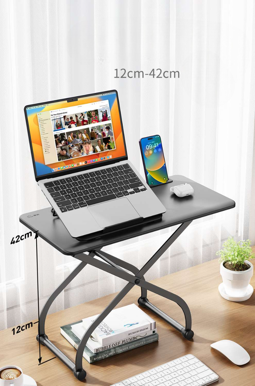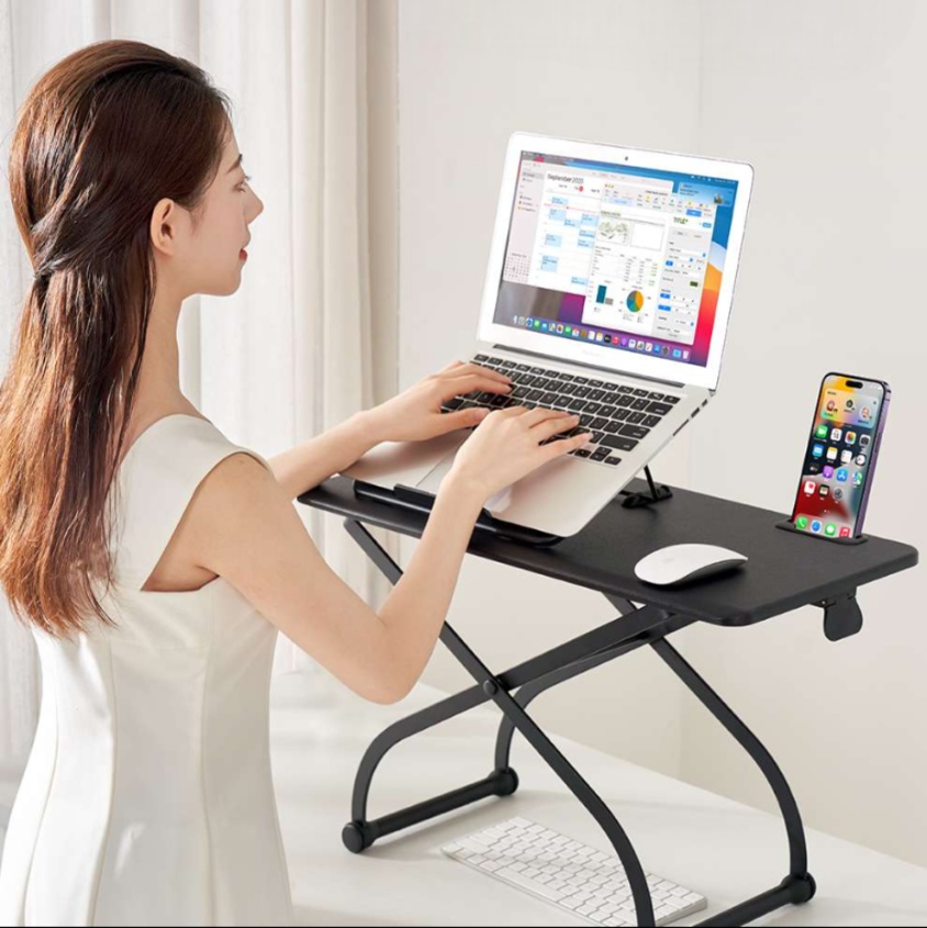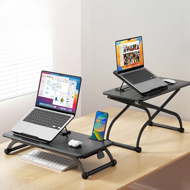 デスクに置くだけで高さ調整できるスタイリッシュなデザイン。