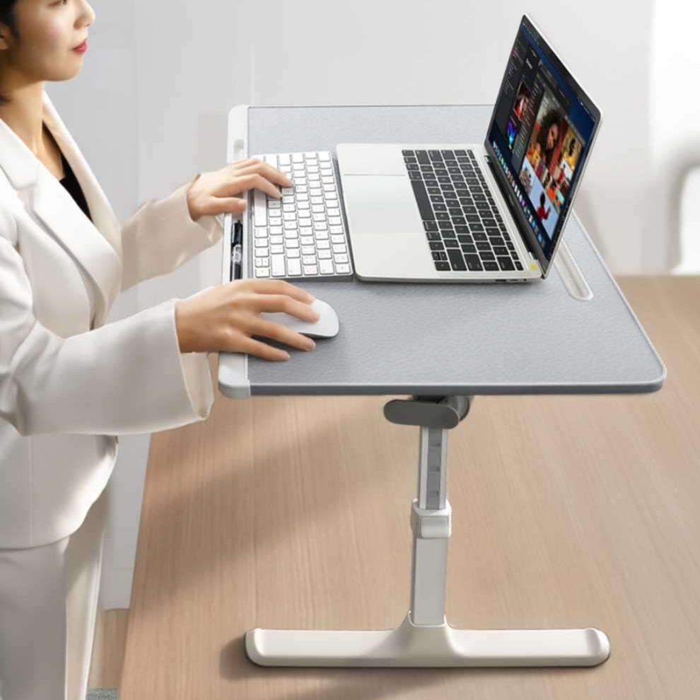 快適な作業環境を提供するノートパソコン用パソコンスタンド。座りと立ちの姿勢を簡単に切り替えられる設計で、5段階の高さ調整機能により27.3cmから38.4cmまで対応。首や腰への負担を軽減し、集中力を高めるサポートを行います。コンパクトなデザインでデスク上のスペースを有効活用し、健康的で効率的な作業スタイルを実現します。あなたのパソコンライフを一新する一品です。