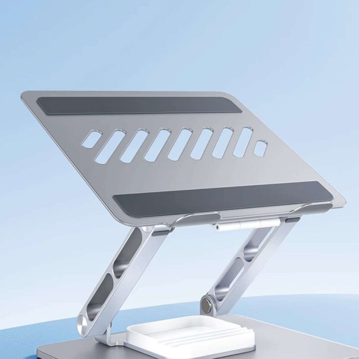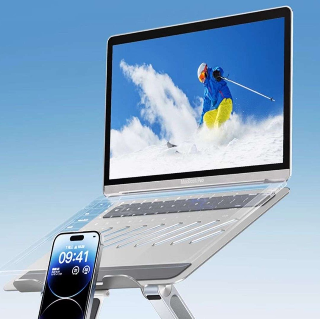 10〜17インチのノートパソコン用多機能スタンドとして高さと角度を自由に調整可能。