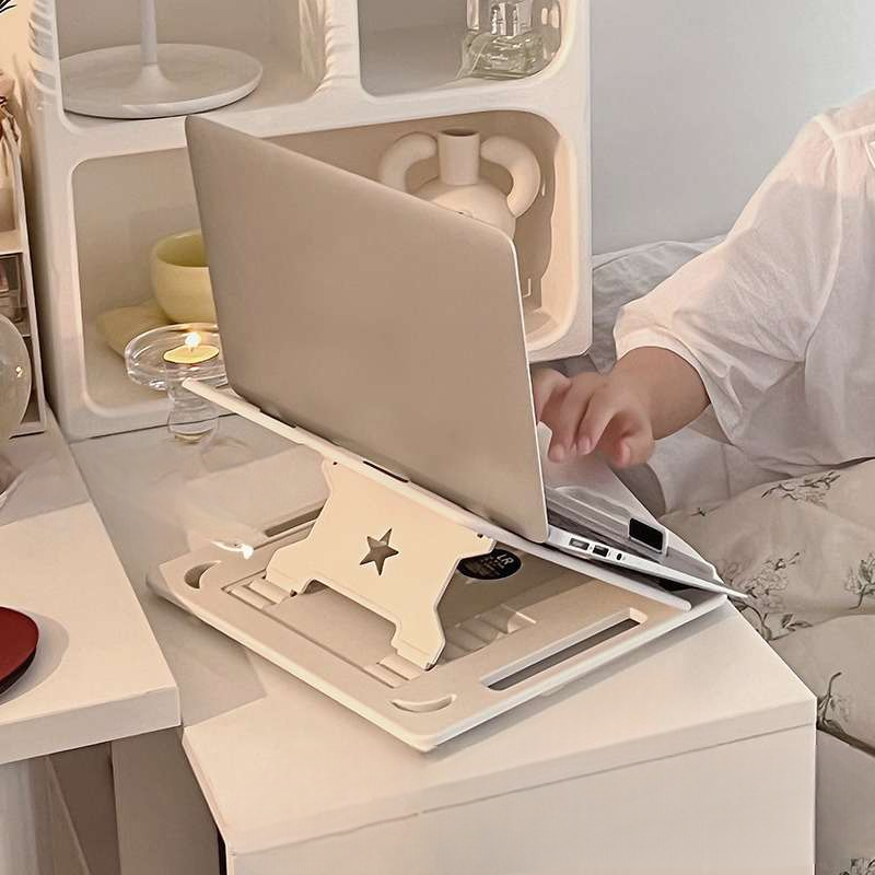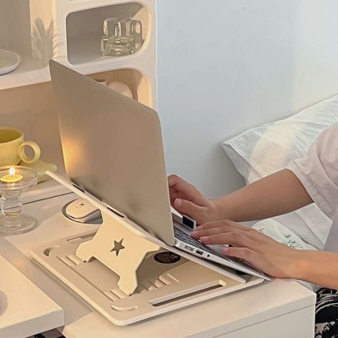 自由に角度調整できるパソコンスタンドで、長時間の作業も快適。