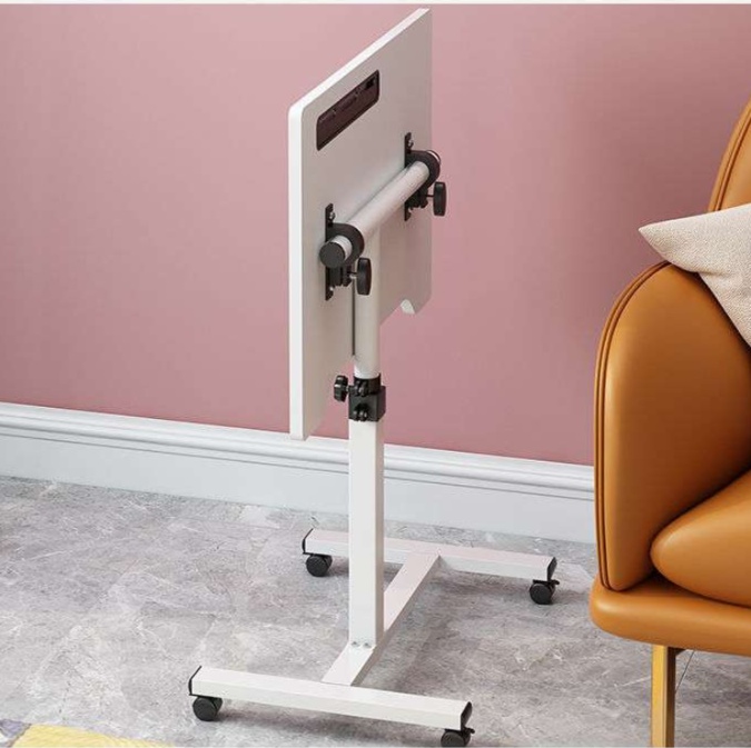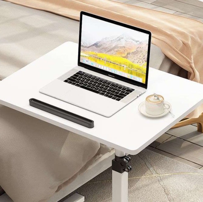 昇降機能や移動式キャスターを備え、ソファやベッドでも快適に作業ができる実用的な設計です。