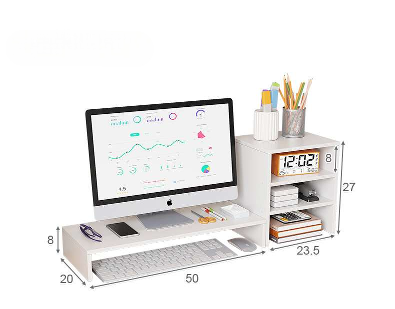 キーボードを収納できる機能的なパソコン台で、モニターの高さを調整しながら作業スペースを広げます。