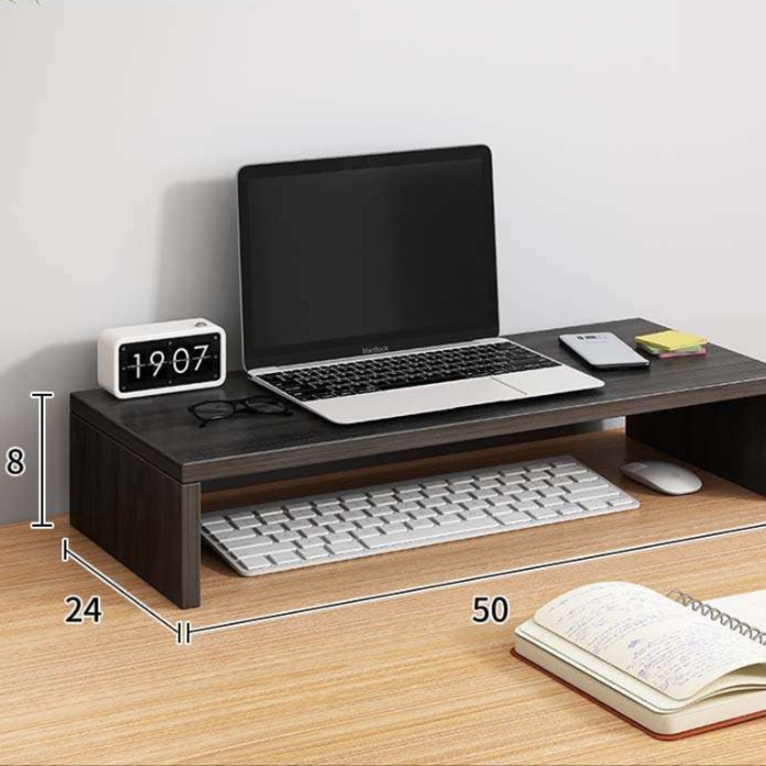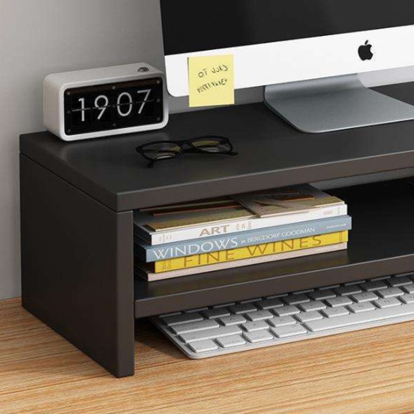 機能的なパソコンスタンドと収納ラックが一体化したデスクトップオーガナイザー。