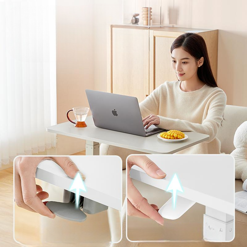 電動昇降式で自由自在に高さを変えられ、座る時も立つ時も快適な姿勢をキープ