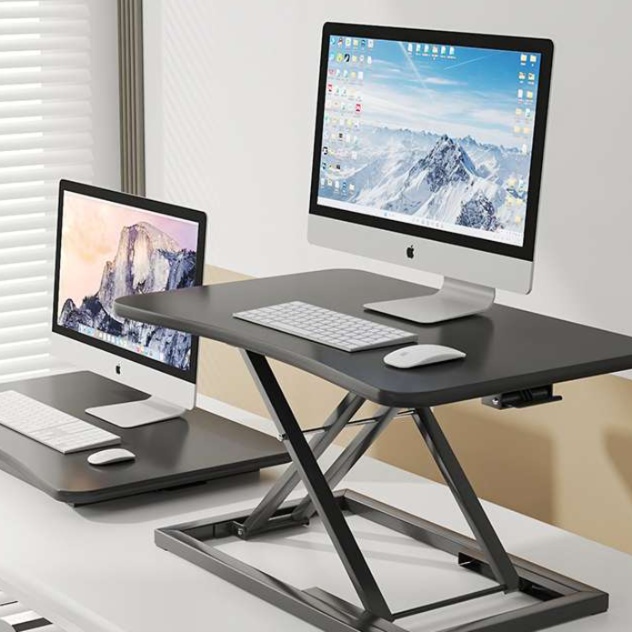 長時間作業による首や肩の疲労を軽減する人間工学に基づいたパソコン台。