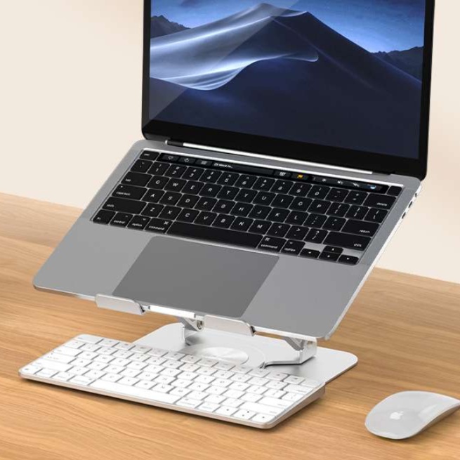 多機能ノートパソコン用パソコンスタンド。上下左右360度回転可能な折りたたみ式設計で、17.3インチまで対応。