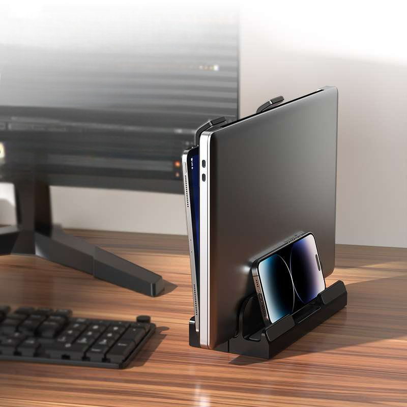 ノートパソコン向けのパソコンスタンドは、省スペースを実現しつつ、優れた放熱効果を提供します。縦置き設計によりデスク周りをスッキリ整理でき、スマートフォンも同時に収納可能。高さと角度を調整できるため、使用者のニーズに応じた快適な作業環境をサポートします。デザイン性と機能性を兼ね備えたこのスタンドで、効率的な作業を実現しましょう。