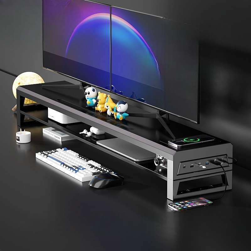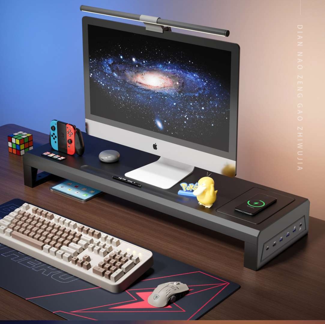 この多機能パソコンスタンドは、高さ調節が可能で、モニターを最適な位置に配置できます。ワイヤレス充電パッドを内蔵しており、スマートフォンの充電もスムーズに行えます。さらに、キーボードやマウスなどの周辺機器をすっきり収納できるため、デスク周りを整理整頓できます。スタイリッシュなデザインがデスク環境をグレードアップし、作業効率を向上させる優れたアイテムです。