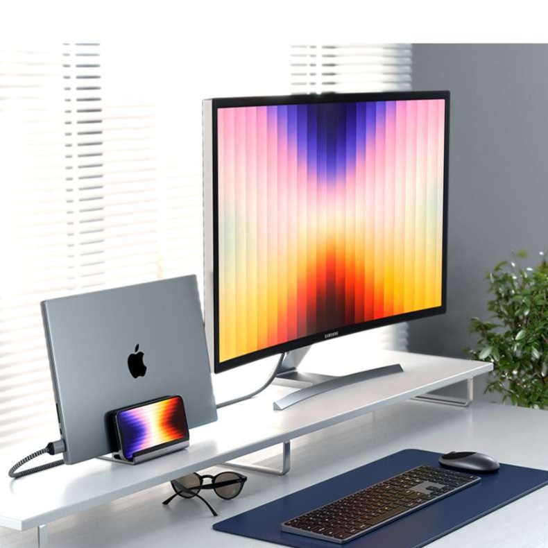 アルミ合金素材が高級感を演出し、デスク周りをすっきり整理できます。