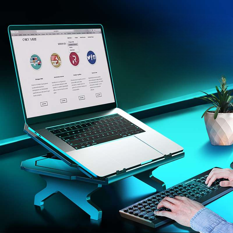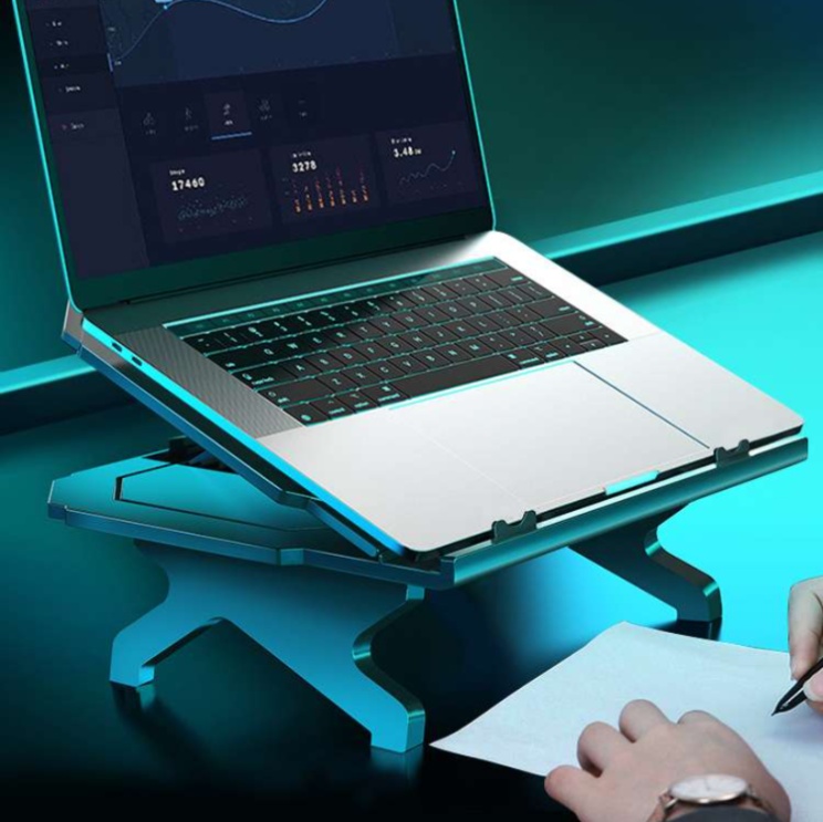 ノートパソコン用パソコンスタンドで高さ調整が自在にできる折りたたみ式設計。 長時間のデスクワークでも首や肩への負担を軽減し、快適な姿勢をサポート。 携帯性と安定性を兼ね備え、作業効率を高める実用的なアイテムです。