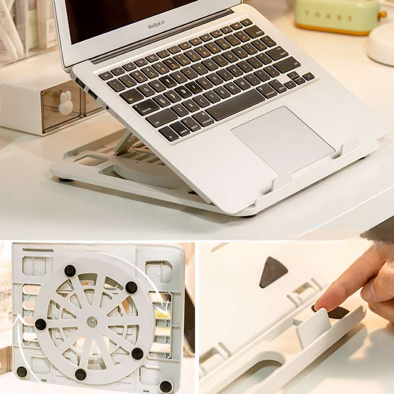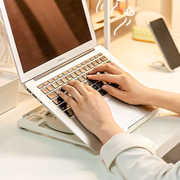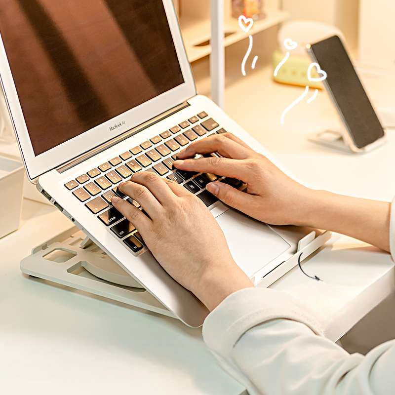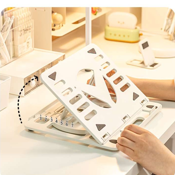 ノートパソコン用パソコンスタンド。7段階の高さ調節と360度回転機能を備えた折りたたみ式デザイン。