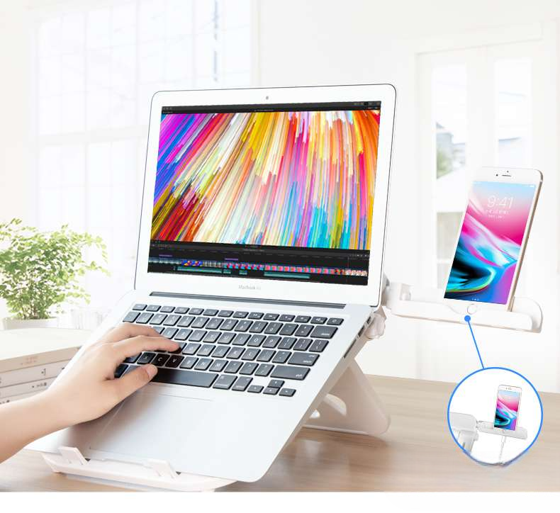 多機能ノートパソコンスタンドは、スマートフォン置き場を備え、作業環境を一新します。高さ調節機能により、自分に最適なポジションを見つけやすく、長時間のデスクワークでも疲れにくい設計です。正しい姿勢をサポートし、集中力を高めることで、効率的な作業を実現します。快適な作業空間を手に入れ、充実した時間を過ごしましょう。