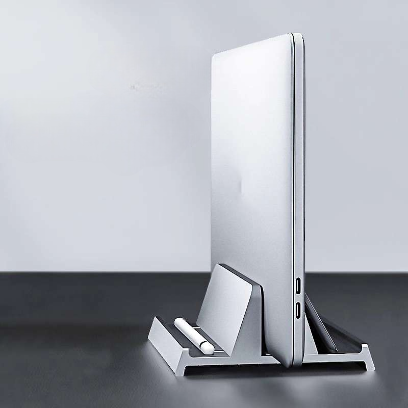 アルミ合金製の軽量パソコンスタンドで、ノートパソコンを縦置きで最大3台収納可能。