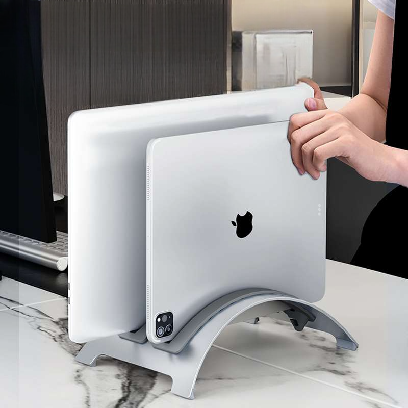 デスク周りをすっきり整理できるパソコンスタンド。 ノートパソコンを縦置きにすることで省スペース化を実現。 2台同時収納可能で作業効率アップ。 厚みのある機器にも対応する安定性の高いスタンド設計。 外部モニター接続時も快適な作業環境を提供します。