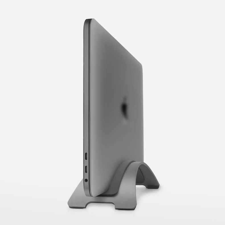 デスク周りをすっきり整理できる縦置き型パソコンスタンド。厚み調整可能で、ノートパソコンをスリムに収納。安定性に優れた滑り止め付きの台座で、机の上のスペースを有効活用できます。