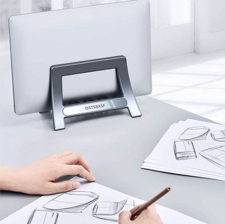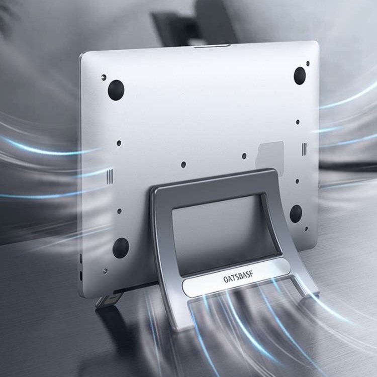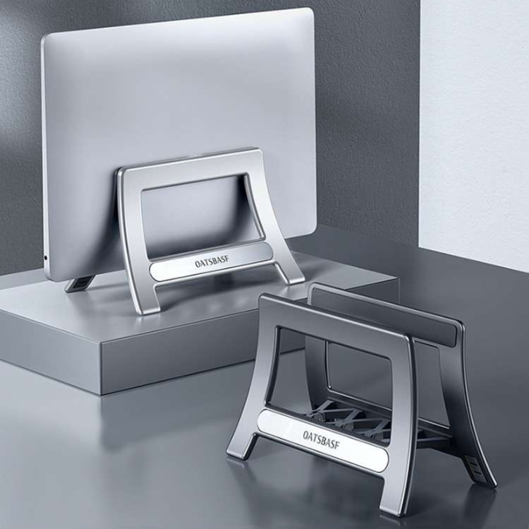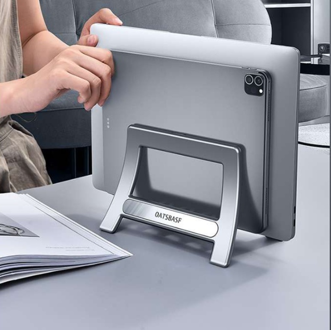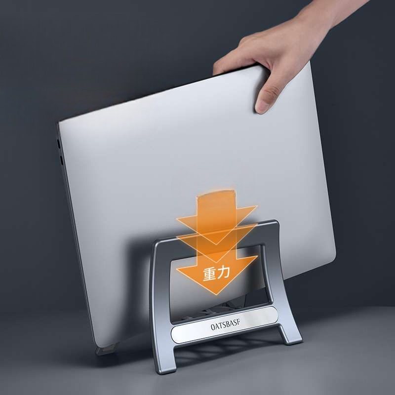 重力感知機能搭載のパソコンスタンド。ノートパソコンを縦置きで安定して保持します。