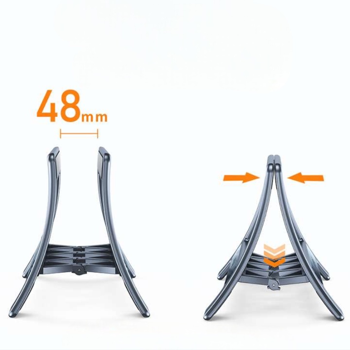 折りたたみ式でコンパクトになり、持ち運びにも便利なスタンドです。