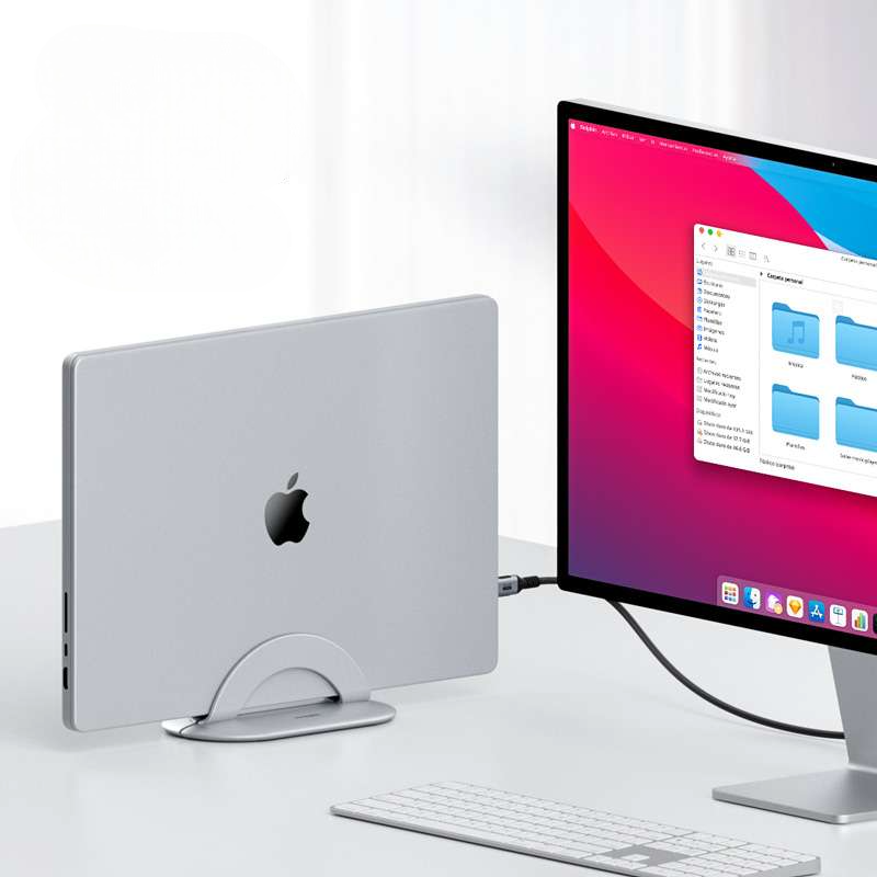 机の上のスペースを有効活用できる縦置き型パソコンスタンド。