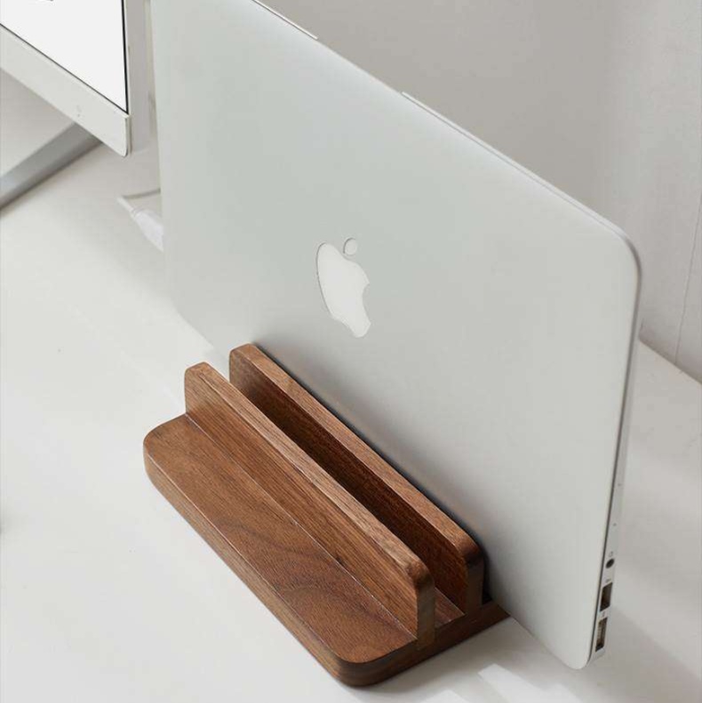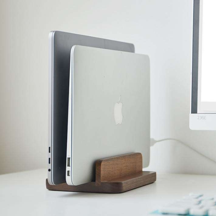 天然木材を使用した縦置き型ノートパソコンスタンド。省スペース設計により、デスク周りをすっきりと保ちつつ、複数台のノートパソコンを効率的に収納可能です。実用的なデザインは整理整頓を助け、作業効率を向上させます。自然な素材感がデスクに温もりをプラスし、スタイリッシュな職場環境を実現します。