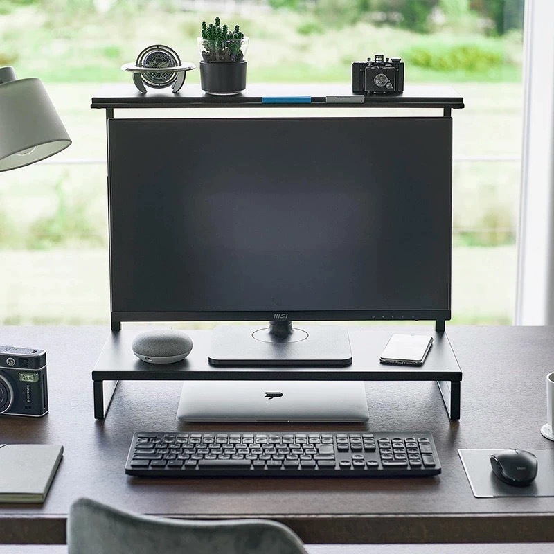 二段構造でモニター下の空間を有効活用でき、キーボードや小物を整理整頓できます。