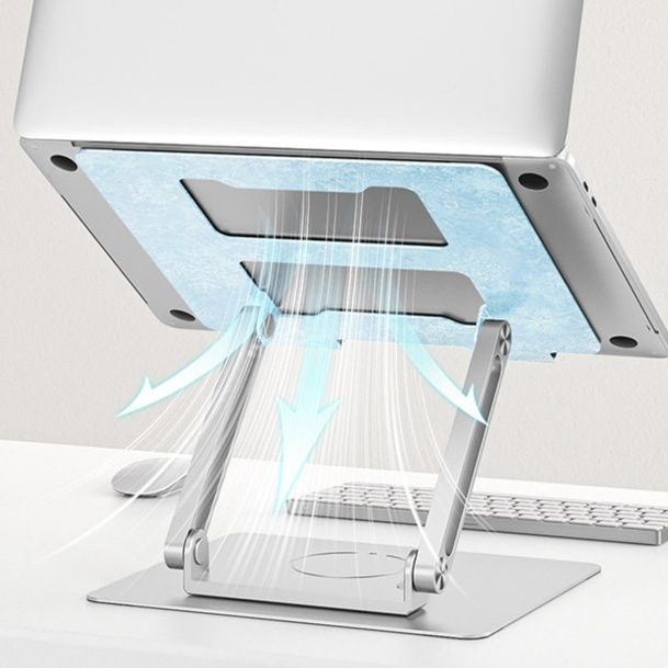 人間工学に基づいた設計で、ノートパソコンを目線の高さに合わせて調整できるパソコンスタンドです。